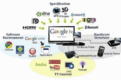 GoogleTV是一個(gè)整合計(jì)算機(jī)系統(tǒng)、媒體播放與網(wǎng)絡(luò)應(yīng)用的概念型電視平臺(tái),由Google公司主導(dǎo)研發(fā),并且免費(fèi)開(kāi)源發(fā)布。GoogleTV的應(yīng)用涵蓋下列領(lǐng)域: