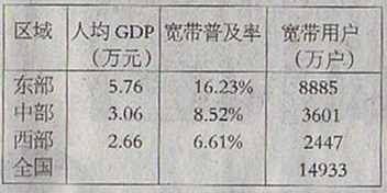 基于互聯(lián)網(wǎng)寬帶普及率與人均GDP的關(guān)系分析,對(duì)我國(guó)東中西部互聯(lián)網(wǎng)寬帶用戶分布進(jìn)行預(yù)測(cè),到2011年年末,全國(guó)互聯(lián)網(wǎng)寬帶用戶數(shù)可達(dá)1.49億。