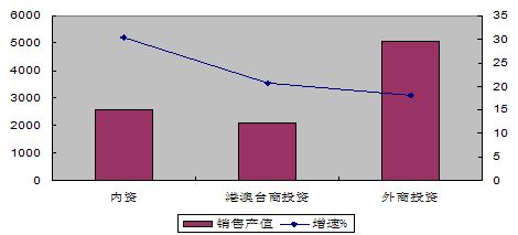 三資企業(yè)實(shí)現(xiàn)銷售產(chǎn)值7132億元,增長18.7%;出口交貨值4932億元,增長14.4%,分別低于行業(yè)平均水平2.9和0.4個百分點(diǎn)。其中港澳臺企業(yè)銷售產(chǎn)值增長20.7%,外商投資企業(yè)增長18.0%。