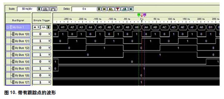 您能告訴分析儀在時鐘邊沿(上升或下降)捕獲數(shù)據(jù),并獲取移位寄存器的所有輸出。當(dāng)然在這種情況下,我們必須延遲跟蹤點(diǎn),以顧及通過移位寄存器的傳播延遲。