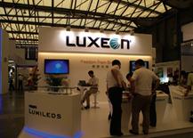 Luxeon Philips成立于 1891 年的Philips 是世界上最大的電子公司之一,主要生產(chǎn)照明、家庭電器、醫(yī)療系統(tǒng)。目前,Philips已發(fā)展成為一家大型跨國公司,在 28 個國家設有生產(chǎn)基地,在 150個國家設有銷售機構(gòu),擁有 8 萬項專利,實力超群。Philips為所有領域提供先進的高效節(jié)能解決方案,包括:道路、辦公室、工業(yè)、娛樂和家居照明等,其主要產(chǎn)品 :HID 氙汽車燈(FUCLUB)、Cosmo Polis( 道路照明 )、Living Colors( 氛圍照明 )。本屆展會上,Philips Lumileds 展出了一系列最新產(chǎn)品,吸引了眾多觀眾。