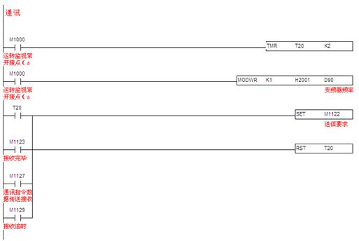 3.2.3通訊程序:臺(tái)達(dá)SS PLC提供兩個(gè)通訊口。本文中,SS PLC的COM1口已與觸摸屏通訊,所以利用SS PLC的COM2 通訊口(此通訊口接口是RS485),支持MODBUS通訊便利指令,編通訊程序像編順序邏輯程序一樣簡單,讓對通訊底層不是很了解的人也能快速上手。快速編寫MODBUS通訊程序,控制如臺(tái)達(dá)全系列產(chǎn)品,如變頻器、溫控器、伺服等產(chǎn)品。見圖10。