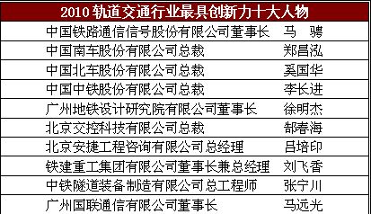 2011年中國軌道交通行業(yè)步入一個井噴式發(fā)展的新階段,中國已經(jīng)成為世界最大的軌道交通市場。眾多企業(yè)是如何與時俱進不斷創(chuàng)新?行業(yè)又該如何記錄那些不囿于桎梏勇于創(chuàng)新的先進?總結(jié)本年度在軌道交通行業(yè)勇于創(chuàng)新的企業(yè)和人物,由RT《軌道交通》雜志的主辦2011年度軌道交通創(chuàng)新力企業(yè)TOP50評價活動,將向業(yè)界隆重推出以智慧和膽識譜寫創(chuàng)新篇章的軌道交通先驅(qū)!