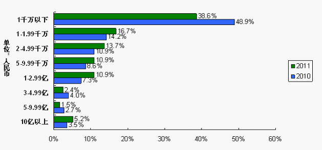 此外,IC和電子元器件的平均采購額由2010調(diào)查的1.02億增加至2011調(diào)查的1.15億,增加12.7%。采購總額在1億人民幣以上的系統(tǒng)廠商由2010調(diào)查的17.5%增加至2011調(diào)查的20.1%,大中型企業(yè)表現(xiàn)出成長。采購總額在1千萬以下的系統(tǒng)廠商由2010調(diào)查的48.9%降至2011調(diào)查的38.6%,小微型企業(yè)由于經(jīng)營困難或缺貨沖擊而倒下。