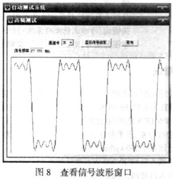 (2)控制命令介紹。本系統(tǒng)中的控制命令都是由PC 機發(fā)出的,共8 個命令:選擇控制寄存器1(低頻部分);選擇控制寄存器2(高頻部分);選擇控制寄存器3(高速采樣部分);寫控制寄存器數(shù)據(jù);讀取數(shù)據(jù)1(低頻部分);讀取數(shù)據(jù)2(高頻部分的頻率值);讀取波形采樣數(shù)據(jù);開始/停止測試。