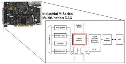 圖12 工業(yè)NI M系列多功能DAQ采用數(shù)字隔離裝置