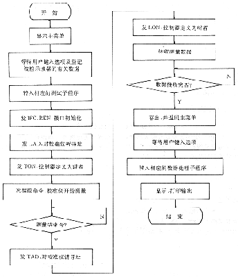 為了提高軟件的可靠性和檢測的精度,本系統(tǒng)采用了模塊化、結(jié)構(gòu)化的設(shè)計(jì)思想。模塊化使各參數(shù)檢測子程序能獨(dú)立完成而不受其它模塊的影響。這種方法使程序在調(diào)試和運(yùn)行時(shí),具有良好的安全性和可靠性。另外,結(jié)構(gòu)化的順序進(jìn)行和其判斷功能,使之在程序設(shè)計(jì)中充分考慮到了各種可能出現(xiàn)的情況,并可自行處理在檢測中出現(xiàn)的一些問題,從而在一定程度上保證了程序的完整性。其軟件的流程圖如下: