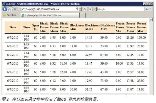下面的例子是從交換機處將兩個多播流送入到VQS1000服務器。這兩個會話來自兩個不同的視頻編碼器,但看起來仍為同一實際視頻。其中第一個編碼器的編碼速率為2Mbps,而另一個編碼器的編碼速率為8Mbps。圖4表示的是VQS1000應用程序對兩個會話同時測量的兩個拷貝。這兩項測量均是實時進行的,在圖4的并列顯示中給出了它們的測量結果。容易看出,碼率為2Mbps的視頻圖像質量較差,有著較高的塊效應讀數(shù),而碼率為8Mbps的視頻有著相對平緩的塊效應數(shù)值,這和我們預期的結果是一致的。