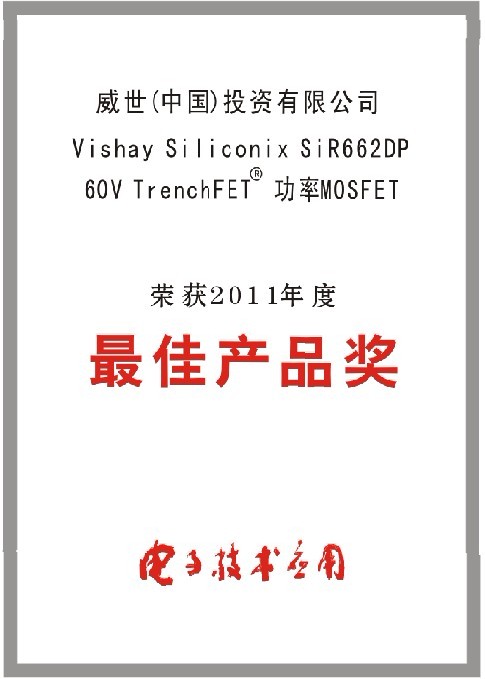 - Vishay功率MOSFET榮獲《電子技術(shù)應(yīng)用》雜志“中國(guó)優(yōu)秀電子產(chǎn)品”獎(jiǎng)