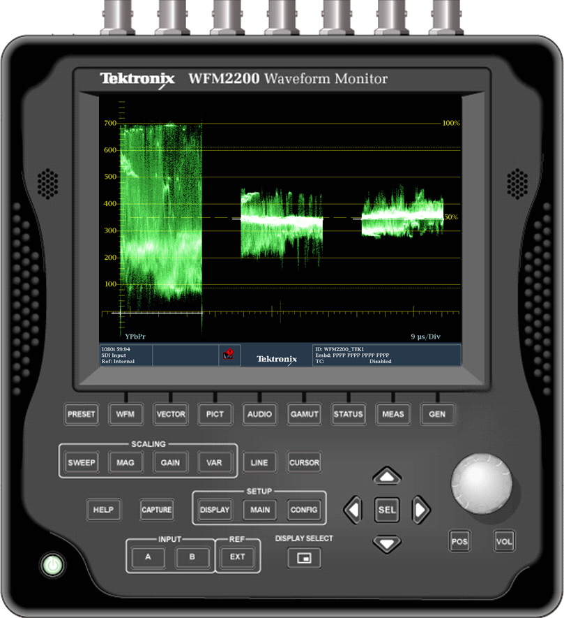 • 用于測(cè)試設(shè)備同步信號(hào)(“House Black”)的輸入,包括獨(dú)特的同步顯示,這簡化了設(shè)置和驗(yàn)證。此外,為了查找計(jì)時(shí)問題和驗(yàn)證一致性,WFM2200還提供了查看模擬參考信號(hào)的功能。