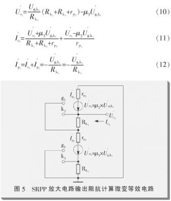 從式(11)~(13)可計算得到SRPP放大電路的輸出阻抗為: