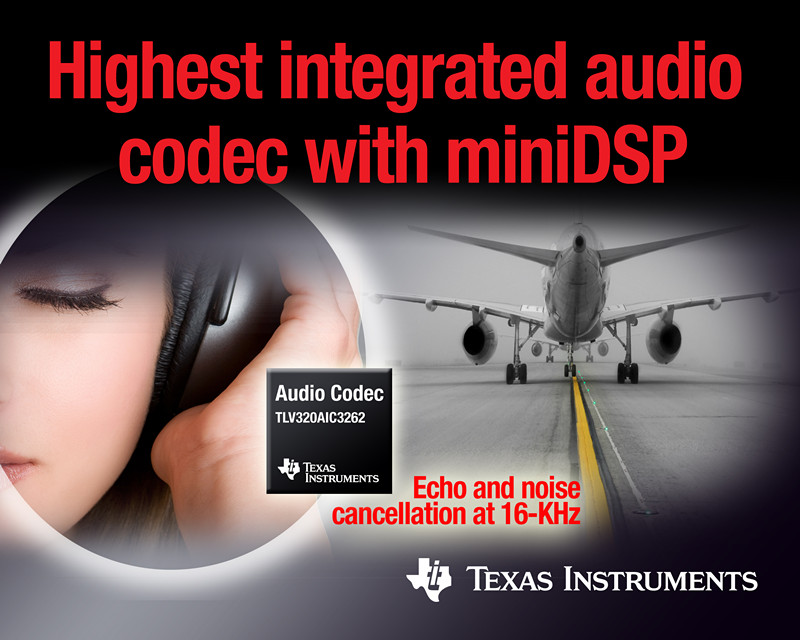 日前,德州儀器 (TI)推出一款具有嵌入式 miniDSP 內(nèi)核的業(yè)界最高集成度音頻編解碼器,可在寬帶語(yǔ)音采樣率高達(dá) 16 kHz 的應(yīng)用中抵消回聲及噪聲。該 TLV320AIC3262 高度集成 5 個(gè)放大器與 2 個(gè) miniDSP 內(nèi)核,可幫助設(shè)計(jì)人員同時(shí)連接3 個(gè)器件,如應(yīng)用、藍(lán)牙 (Bluetooth) 以及基帶處理器等。音頻語(yǔ)音樣片可在編解碼器中無縫接收、混合與處理,且該編解碼器同時(shí)配置TI 音頻語(yǔ)音算法及第三方算法,也可用作其它許可證,可為設(shè)計(jì)人員在移動(dòng)設(shè)備上創(chuàng)建多功能高清音頻設(shè)計(jì)帶來極大優(yōu)勢(shì)。