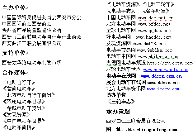 ? 5-6月份組委會將派人員到陜西、甘肅、寧夏、山西等各市、縣以及鄉(xiāng)鎮(zhèn)的電動車經(jīng)銷商進(jìn)行展會宣傳;