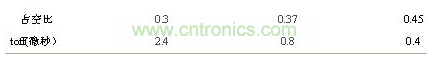 該電路具有以下優(yōu)點(diǎn):①電路結(jié)構(gòu)簡(jiǎn)單可靠,實(shí)現(xiàn)了隔離驅(qū)動(dòng)。②只需單電源即可提供導(dǎo)通時(shí)正、關(guān)斷時(shí)負(fù)壓。③占空比固定時(shí),通過(guò)合理的參數(shù)設(shè)計(jì),此驅(qū)動(dòng)電路也具有較快的開(kāi)關(guān)速度。該電路存在的缺點(diǎn):一是由于隔離變壓器副邊需要一個(gè)假負(fù)載防震蕩,故該電路損耗較大;二是當(dāng)占空比變化時(shí)關(guān)斷速度變化加大。脈寬較窄時(shí),由于是貯存的能量減少導(dǎo)致MOSFET柵極的關(guān)斷速度變慢。表1為不同占空比時(shí)關(guān)斷時(shí)間toff(驅(qū)動(dòng)電壓從10伏下降到0伏的時(shí)間)內(nèi)變化情況。
