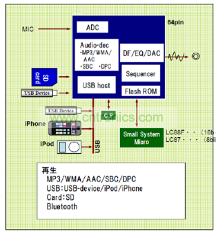 安森美半導(dǎo)體新開發(fā)的DSP無機(jī)芯方案包含各種音頻格式編解碼,可以支持多種外接設(shè)備如USB、iPad、iPhone、SD卡和藍(lán)牙等。內(nèi)部算法還包括了音效處理功能;另外,還預(yù)留了CD-DSP接口,將CD機(jī)芯作為可選配置,實現(xiàn)平臺化設(shè)計,目前已有相應(yīng)產(chǎn)品推出。圖6是安森美半導(dǎo)體的無機(jī)芯DSP方案。