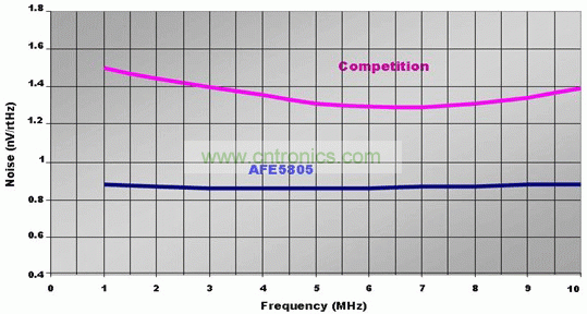 超聲波成像作為一種醫(yī)療診斷工具被廣泛采用已有很多年。其之所以被廣泛采用是因為它具有無創(chuàng)傷、低成本、便攜性以及實時性等特點。帶有便攜式超聲波系統(tǒng)的新型前沿產(chǎn)品已經(jīng)成功地 運用于許多應用中,例如:及時創(chuàng)傷診斷和急診及治療。最近的一些創(chuàng)新將使新型超聲波系統(tǒng)實現(xiàn)前所未有的低功耗和小尺寸。噪聲決定了超聲波圖像的質(zhì)量和系統(tǒng)的靈敏度。現(xiàn)在就有一款可以 實現(xiàn)更低的噪聲并且在整個工作頻率范圍內(nèi)噪聲均保持不變的解決方案。