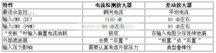 顯而易見,雖然電流檢測放大器和差動放大器工作方式不同,卻履行同樣的功能。差動放大器將高輸入電壓衰減,使信號達到放大器可以接受的電平。電流檢測放大器將差分輸入電壓轉(zhuǎn)換為電流,然后再轉(zhuǎn)換至以地為參考的電壓;其輸入放大器因采用高壓制作工藝,能承受高共模電壓,。毫無疑問,兩個架構(gòu)的不同將導致其性能差異,設(shè)計工程師在選擇高端電流檢測解決方案時必須考慮這些性能差異。通常,廠商的數(shù)據(jù)手冊已提供了大部分信息,可根據(jù)精度、速度、功耗及其他參數(shù)對器件的類型做出正確判斷。然后,器件架構(gòu)內(nèi)在的某些重大差異是無法在數(shù)據(jù)手冊中立刻發(fā)現(xiàn)的,但這些也是非常重要的設(shè)計考慮事宜。下面給出了一些工程師在實現(xiàn)最佳解決方案時必須考慮的關(guān)鍵點。