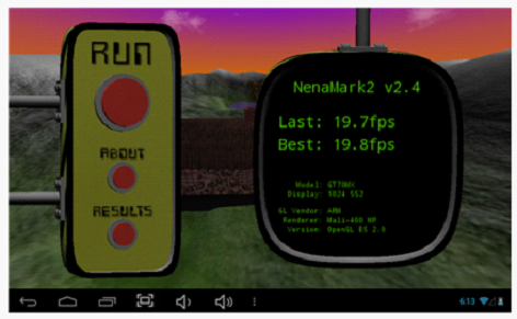 NenaMark2是一款用于Android設(shè)備的硬件加速基準(zhǔn)測試程序,通過演示一款實時渲染的畫面來對手機(jī)的圖形能力進(jìn)行測試,包括反射、動態(tài)陰影、曲面參數(shù)、復(fù)雜光線模式等內(nèi)容,需要Android 2.0以上系統(tǒng)和OpenGL ES 2.0支持。
