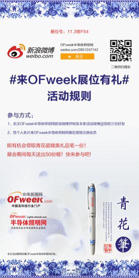 本次照明展上,OFweek半導(dǎo)體照明網(wǎng)還為熱心關(guān)注的朋友帶來(lái)了精美禮品,歡迎各位親臨11-3展館/F54展位關(guān)注OFweek半導(dǎo)體照明網(wǎng)!