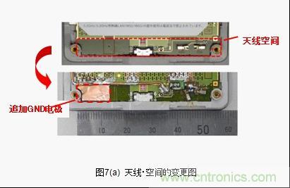 接下來將針對天線小型化的有效性進行檢測。一般來說天線具有改善接地距離的特性。但是,天線占據(jù)空間(排除了GND領(lǐng)域)很大的話天線以外的 元器件安裝空間就會受壓迫。天線小型化和縮小天線空間迫在眉睫。當天線空間的一部分被GND占據(jù),對這時候的天線特性的變化進行評價。天線空間的寬度為52mm,其中13mm被GND占據(jù),low band的特性劣化,變成了跟LC電路等同的Total Efficiency(圖7(b))。這就意味著實際上天線空間的面積可減少25%。