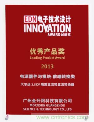 圖1:金升陽榮獲2013年第八屆EDN China優(yōu)秀產(chǎn)品獎