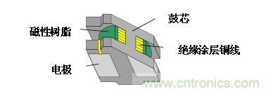 上述LQH系列在鼓芯外面纏繞的絕緣涂層銅線(xiàn)的周?chē)?,?yīng)用的磁性樹(shù)脂起到了減少漏磁通、保護(hù)絕緣涂層銅線(xiàn),提高產(chǎn)品強(qiáng)度的作用。構(gòu)造概論如圖2所示。