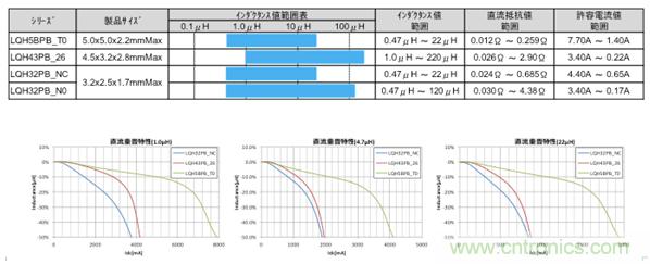 表1,車(chē)載信息設(shè)備用功率電感LQH**PB系列的產(chǎn)品概要