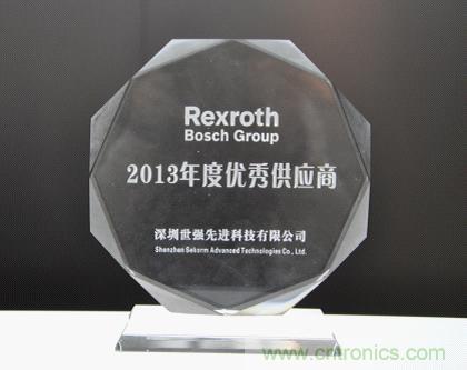 圖1:世強獲博世力士樂(西安)2013年度優(yōu)秀供應商獎