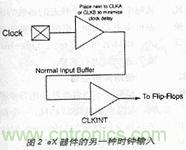 有時用戶很難阻止時鐘進入器件。在此場合,用戶可使用與CLKA或CLKA相鄰的正常輸入引腳并在設(shè)計中加進CLKINT。這樣,時鐘將通過靠近時鐘引腳的正常輸入進入器件,再通過CLKINT向器件提供時鐘資源。