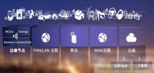 目前,整個(gè)物聯(lián)網(wǎng)的系統(tǒng)架構(gòu)可以分為5個(gè)部分,分別是邊緣節(jié)點(diǎn)、PAN/LAN互聯(lián)、網(wǎng)關(guān)、WAN互聯(lián)和云端,如圖1所示。飛思卡爾發(fā)現(xiàn),很多公司所做的產(chǎn)品無(wú)法在邊緣節(jié)點(diǎn)、網(wǎng)關(guān)以及云端這3個(gè)層次中共用。例如可穿戴設(shè)備,或者所設(shè)計(jì)的智能家居中的某些節(jié)點(diǎn),要對(duì)該節(jié)點(diǎn)進(jìn)行控制,可能選擇方案是“入門(mén)級(jí)低功耗MCU+連接性+