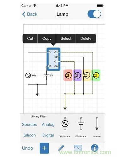 《電子電路仿真和設(shè)計 iCircuit》是首屈一指的電路設(shè)計和試驗(yàn)應(yīng)用程序,功能非常強(qiáng)大,這是學(xué)生,業(yè)余愛好者和工程師的完美伴侶。其先進(jìn)的模擬引擎可以處理模擬和數(shù)字電 路和實(shí)時分析的功能 。只要您會任何CAD程序,您就可以使用它:添加元素,它們連接在一起,并設(shè)置其屬性,但iCircuit不像其他CAD程序,因?yàn)樗冀K是模擬。這就像 與實(shí)際電路的工作 。你不停止進(jìn)行測量,或花很多時間配置。雖然這個只是玩玩,但他像真實(shí)的電路一樣!有超過30種元件,你可以用它來構(gòu)建電路。從簡單的電阻,開關(guān),晶體 管,數(shù)字門。您還可以模擬探頭檢測周圍的電路,有即時讀取電壓和電流的萬用表。如果你想看經(jīng)過一段時間數(shù)值是如何變化的,那么你可以使用內(nèi)置示波器。