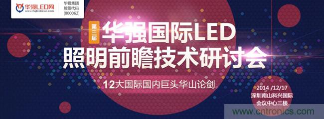 《第三屆華強(qiáng)國際LED照明前瞻技術(shù)研討會(huì)》將于2014年12月17日(周三)在廣東省深圳市科技園科興國際會(huì)議中心3樓舉行,屆時(shí)臺(tái)灣拓?fù)洚a(chǎn)業(yè)研究所所長楊勝帆、NXP市場營銷總監(jiān)王永斌、Marvell技術(shù)市場經(jīng)理關(guān)振源、明微電子副總經(jīng)理李照華、昂寶副總裁高維、昂帕董事長桑鈞晟博士、英飛特電子副總經(jīng)理張華建、華燦光電副總裁王江波、聚元微電子總經(jīng)理韓興成、綠寶石技術(shù)總監(jiān)伍松、中昊光電總經(jīng)理王孟源、華燦光電副總裁王江波、清華大學(xué)副研究員錢可元將親自前來與您共同探討2015年LED照明市場的新需求、新變化和新趨勢,精彩就在眼前,期待您也能撥冗前來共襄這一LED照明行業(yè)全明星盛會(huì)。