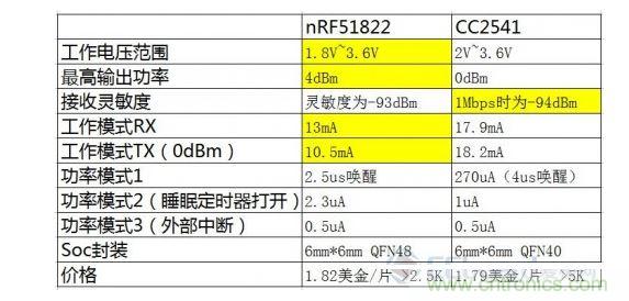 簡單的對比中我們可以發(fā)現(xiàn),這顆Nordic N51822 Soc功耗絕不是蓋的,相比Ti的 CC2541將近低了30%~40%(有點不可思議)。