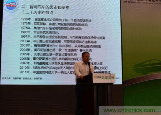 參加分論壇之“智能交通與車聯(lián)網(wǎng)產(chǎn)業(yè)發(fā)展”的主講嘉賓包括車載信息服務產(chǎn)業(yè)應用聯(lián)盟秘書長龐春霖,中國科學院微電子研究所副所長、中國科學院物聯(lián)網(wǎng)研究發(fā)展中心常務副主任陳大鵬,深圳市中興物聯(lián)科技有限公司總經(jīng)理古永承先生等。龐秘書長表示在智能汽車領(lǐng)域隱藏著巨大的商機,隨著智能終端和手持終端交互的互聯(lián)化,主動安全措施的標配化等,隱藏的商機將被不斷發(fā)現(xiàn)并挖掘。陳大鵬主任從行業(yè)的融合、競爭的轉(zhuǎn)變、企業(yè)的轉(zhuǎn)型、汽車與車聯(lián)網(wǎng)四大方面就車聯(lián)網(wǎng)與新能源汽車做了詳細介紹。他表示,信息技術(shù)與傳統(tǒng)行業(yè)的融合可以為傳統(tǒng)行業(yè)開辟新的局面,未來的汽車必然是電子信息和軟件主導的新能源智慧車輛。
