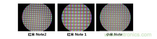 我們再來看一下顯示屏的像素結(jié)構(gòu),從像素的排列來看,這個屏幕確實(shí)是IPS技術(shù)的,像素比紅米Note1有了大大的提升。