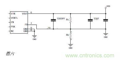 另外一點(diǎn)非常重要的是,除了PWM開關(guān)電源,有很多線性電源(LDO),其補(bǔ)償網(wǎng)絡(luò)在芯片外部的,也要做類似的環(huán)路增益的波特圖測試,從而確保其穩(wěn)定性。LDO的測試,是絕大多數(shù)廠家容易忽略掉的。比如如下圖六所示這種電路,很多人會(huì)直接測量噪聲完事。