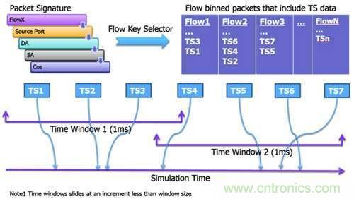 某些情況下,可能需要數(shù)百萬個資料包才能切中當(dāng)前設(shè)計中穩(wěn)態(tài)分析的重點(diǎn)。以測量兆百萬位元組乙太網(wǎng)交換機(jī)的流量位元速率為例。采用虛擬乙太網(wǎng)簽名生成和封包時間戳記(TS)來計算這些數(shù)據(jù)。
