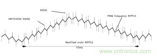 --工頻噪聲(Recfified main RIPPLE),一般是交流供電頻率的兩倍。我國(guó)供電頻率是50Hz,所以它的紋波主要來自工頻50Hz變壓器。大小取決于整流電路的類型。對(duì)于半波整流,50Hz;對(duì)于全波整流,是100Hz;對(duì)于三相全波整流,300Hz。
