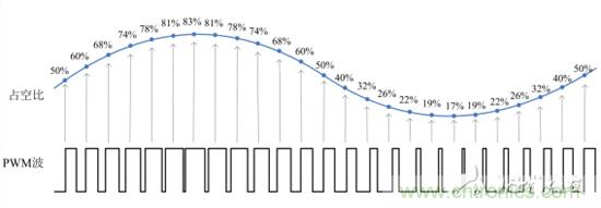 脈沖寬度調(diào)制(PWM)是一種對(duì)模擬信號(hào)進(jìn)行數(shù)字編碼的方法。通過高分辨率計(jì)數(shù)器的使用,方波的占空比被調(diào)制用來對(duì)一個(gè)具體模擬信號(hào)進(jìn)行編碼。PWM信號(hào)仍然是數(shù)字的,因?yàn)樵诮o定的任何時(shí)刻,滿幅值的直流供電要么完全有(ON),要么完全無(OFF)。電壓或電流是以一種通(ON)或斷(OFF)的重復(fù)脈沖序列被加到模擬負(fù)載上去。通的時(shí)候即是直流供電被加到負(fù)載上的時(shí)候,斷的時(shí)候即是供電被斷開的時(shí)候。只要帶寬足夠,任何模擬值都可以使用PWM進(jìn)行編碼。而占空比就是高電平持續(xù)時(shí)間與整個(gè)周期時(shí)間的比值,占空比越大,高電平持續(xù)的時(shí)間越長,模擬電路開通的時(shí)間就越長,如圖1所示。