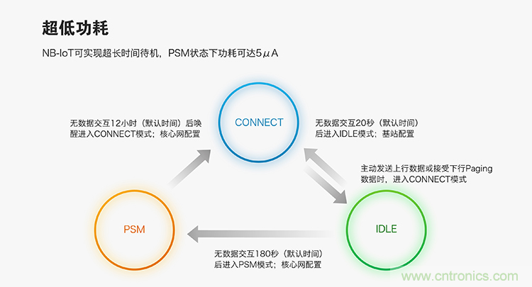 不僅優(yōu)化模塊內部的嵌入式軟件和AT指令的易用性,更是站在用戶角度考慮端到云的應用場景,提供透明傳輸UDP模式,提供CoAP通訊組件,嚴格的重傳機制,保障數據發(fā)出必答,不達報警,更有透傳云服務,讓用戶零編程即可使用NB-IoT搭建系統(tǒng)。