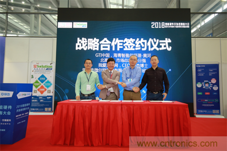 在開啟技術(shù)方案平臺+供應(yīng)鏈創(chuàng)新模式的同時(shí),我愛方案網(wǎng)與美國GTI戰(zhàn)略合作簽約儀式也成功舉行,邀請到GTI中國海青智盈總經(jīng)理黃河先生,北高智市場總監(jiān)朱仝日強(qiáng),我愛方案網(wǎng)CEO劉杰博士,深圳市微爾聯(lián)科技總經(jīng)理溫曉標(biāo)出席。這也是2017年末AI應(yīng)用聯(lián)盟活動的落地,我愛方案網(wǎng)作為GTI芯片方案服務(wù)商,攜手第一批代理商北高智、方案開發(fā)公司微爾聯(lián),聯(lián)合將GTI芯片逐步推向終端市場。