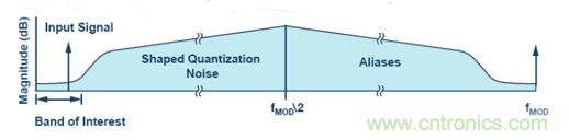此外,Σ-Δ 架構(gòu)可能集成數(shù)字濾波器,用來移除目標(biāo)頻段外的量化噪聲,實(shí)現(xiàn)出色的動(dòng)態(tài)范圍性能,如圖 3 所示。