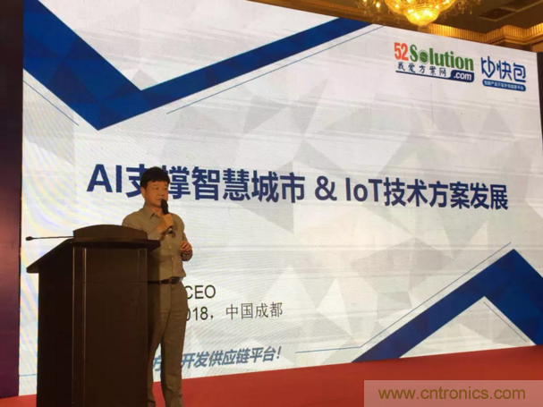 【導(dǎo)讀】為服務(wù)西部產(chǎn)業(yè)創(chuàng)新,中電網(wǎng)絡(luò)技術(shù)/我愛方案網(wǎng)攜手四川本地技術(shù)服務(wù)商與中國電子信息博覽會(huì)來到成都,我愛方案網(wǎng)的CEO劉杰博士在2018中國智慧城市高峰論壇做大會(huì)報(bào)告,圍繞“AI支撐智慧城市和IoT技術(shù)方案發(fā)展”做了主題講演。