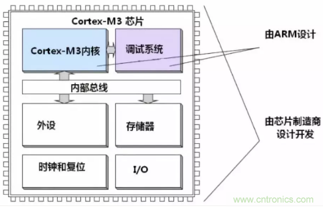 10、ARM公司只生產(chǎn)內(nèi)核標(biāo)準(zhǔn),不生產(chǎn)芯片。ST、TI這樣的公司從ARM公司那里購(gòu)買內(nèi)核,然后外加自己的總線結(jié)構(gòu)、外設(shè)、存儲(chǔ)器、始終和復(fù)位、I/O后就組成了自己的芯片。