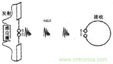 赫茲把這個(gè)接收器放在了離電磁波生成器10米遠(yuǎn)的地方,如果真有電磁波的話,導(dǎo)線接收之后將會(huì)產(chǎn)生電流,并在這兩個(gè)小銅球之間也產(chǎn)生電火花。