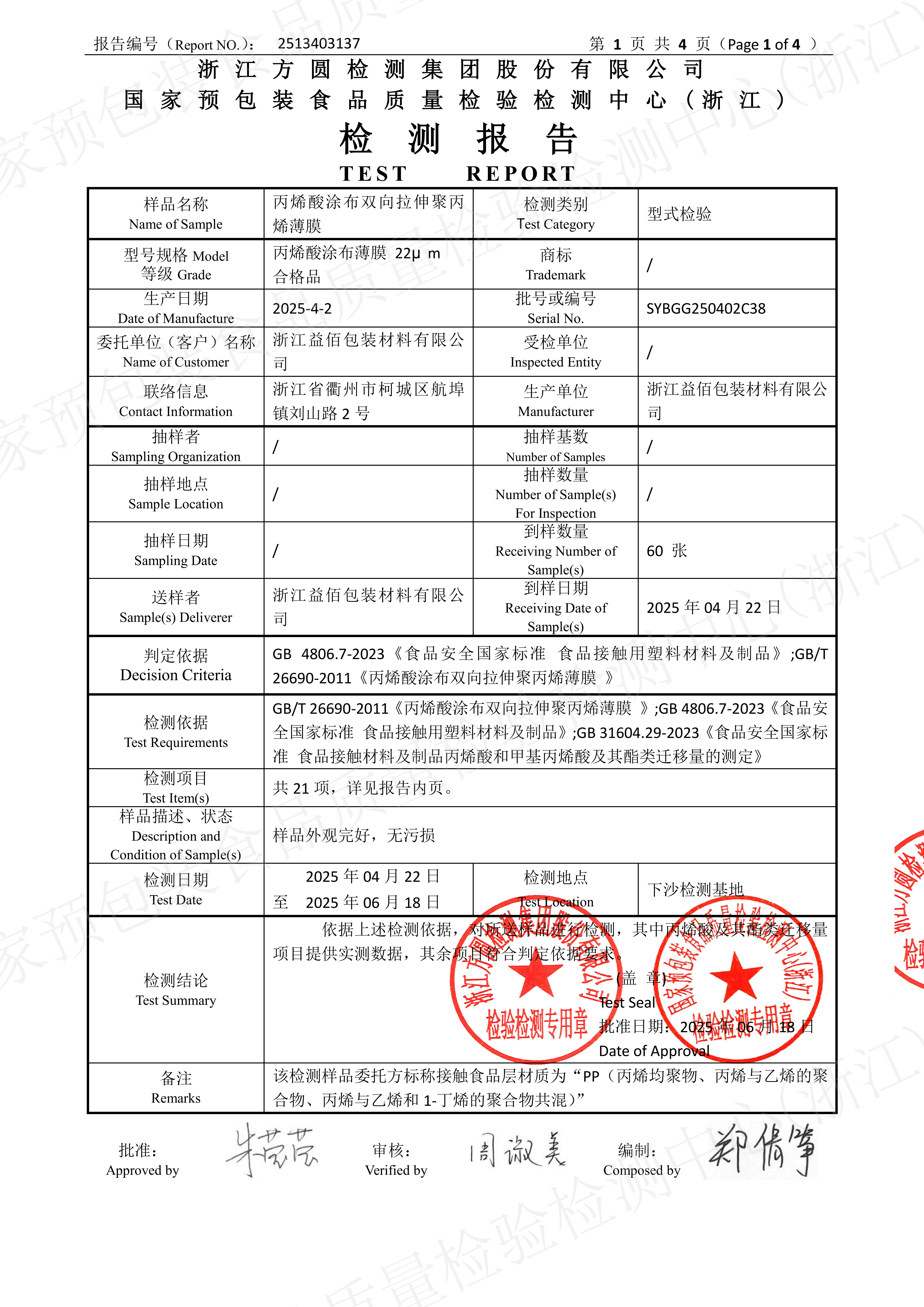 丙烯酸涂布型式檢驗(yàn)中文報(bào)告