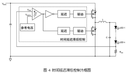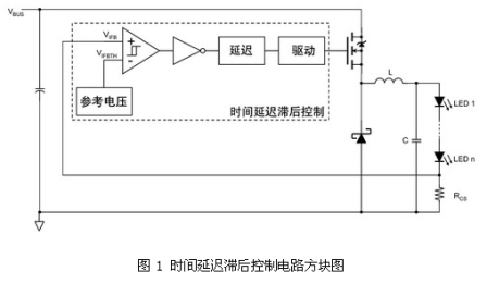 接地參考的傳感電阻簡化了電流傳感電路,但在降壓轉(zhuǎn)換器中需要高壓驅(qū)動(dòng)電路。要避免使用隔離變壓器,在設(shè)計(jì)中必須選擇高邊檢測和低電壓驅(qū)動(dòng)電路,或者低邊檢測和高壓驅(qū)動(dòng)電路。實(shí)現(xiàn)后者的一種有效方法是,采用有時(shí)間延遲滯后控制的高壓降壓驅(qū)動(dòng)電路(見圖 1)。