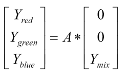 欲找出每個LED應(yīng)輸出的光通量,可利用逆矩陣,然后乘以想要的光通量輸出,如公式2所示。