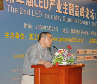 2009年5月23日,由高工在線和深圳市LED產(chǎn)業(yè)聯(lián)合會共同主辦的第二屆LED產(chǎn)業(yè)主題高峰論壇(2009夏季)在深圳市民中心B區(qū)一樓多功能廳隆重舉辦。來自香港應(yīng)用科技研究院的蔡振榮博士、清華大學(xué)深圳研究生院副研究員、半導(dǎo)體照明實驗室副主任錢可元教授、康佳光電研究所副所長馬志凌博士、CREE 中國區(qū)總經(jīng)理唐國慶、世紀(jì)晶源研發(fā)中心主任鐘群博士、深圳雷曼光電科技限公司總經(jīng)理李漫鐵、德士達(dá)光電照明科技(深圳)有限公司的總經(jīng)理熊映翔、深圳市華測檢測技術(shù)股份有限公司(CTI華測檢測機(jī)構(gòu))副總裁/廣州市華德檢測技術(shù)開發(fā)有限公司(DEKRA-CTI華德)總經(jīng)理聶鵬翔、深圳茂碩電源科技股份有限公司的技術(shù)總監(jiān)蘇周等嘉賓就LED芯片、核心器件、顯示、道路照明、路燈標(biāo)準(zhǔn)與關(guān)鍵技術(shù)、LED驅(qū)動電源、LED產(chǎn)品檢測、認(rèn)證和標(biāo)準(zhǔn)化等方面發(fā)表了主題演講。
