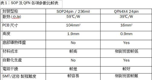 QFN與SOP散熱及尺寸體積比較